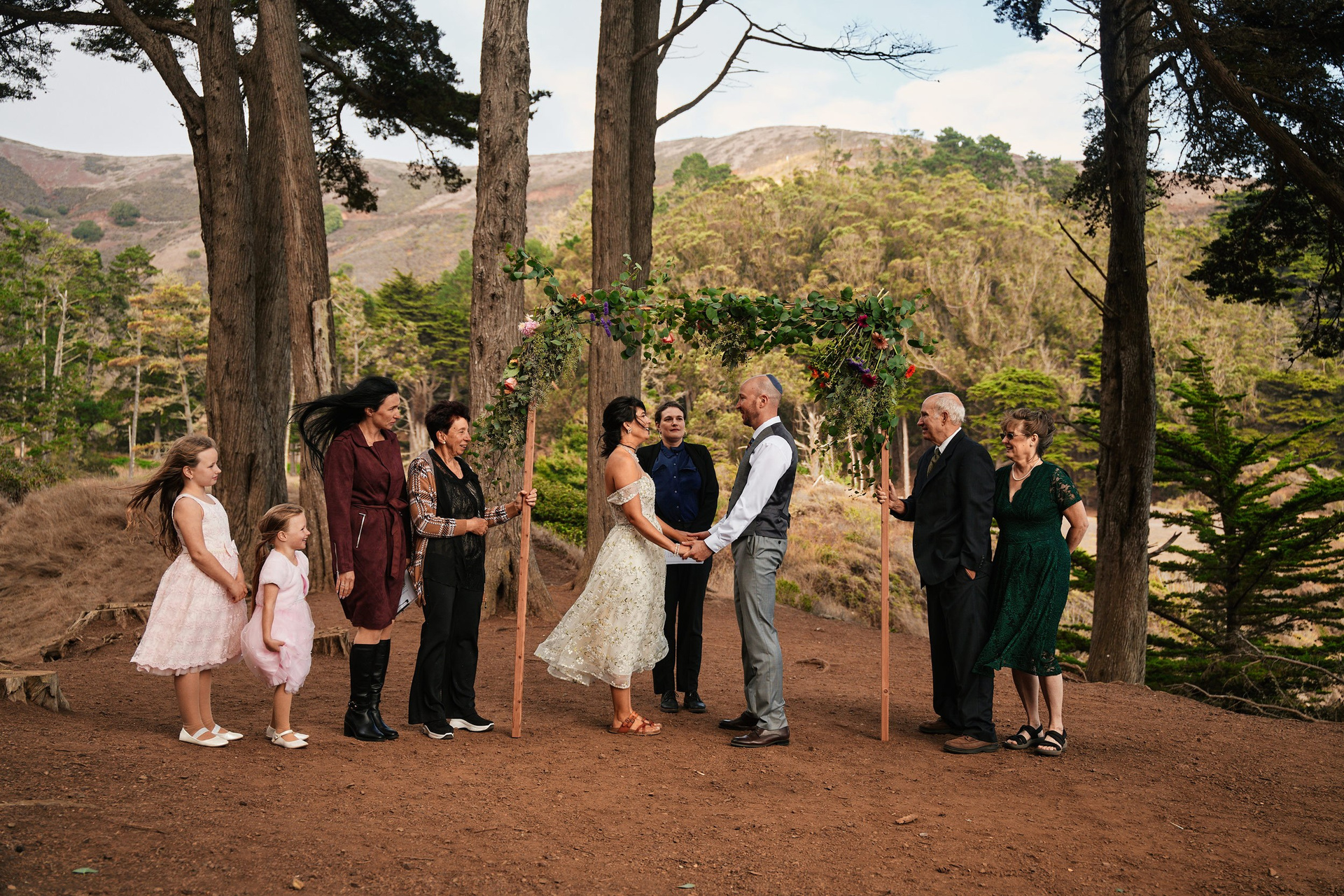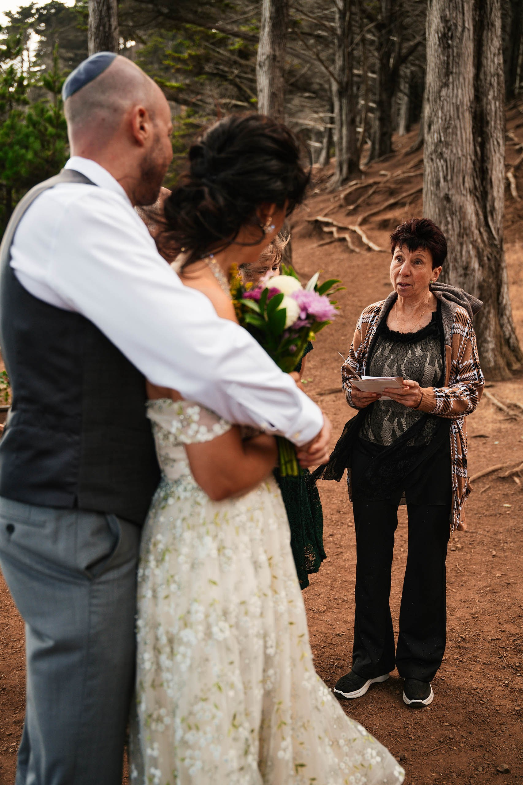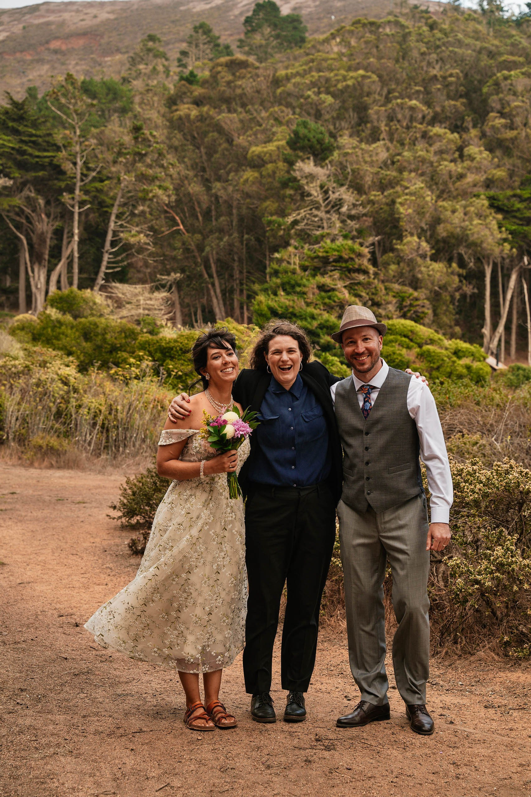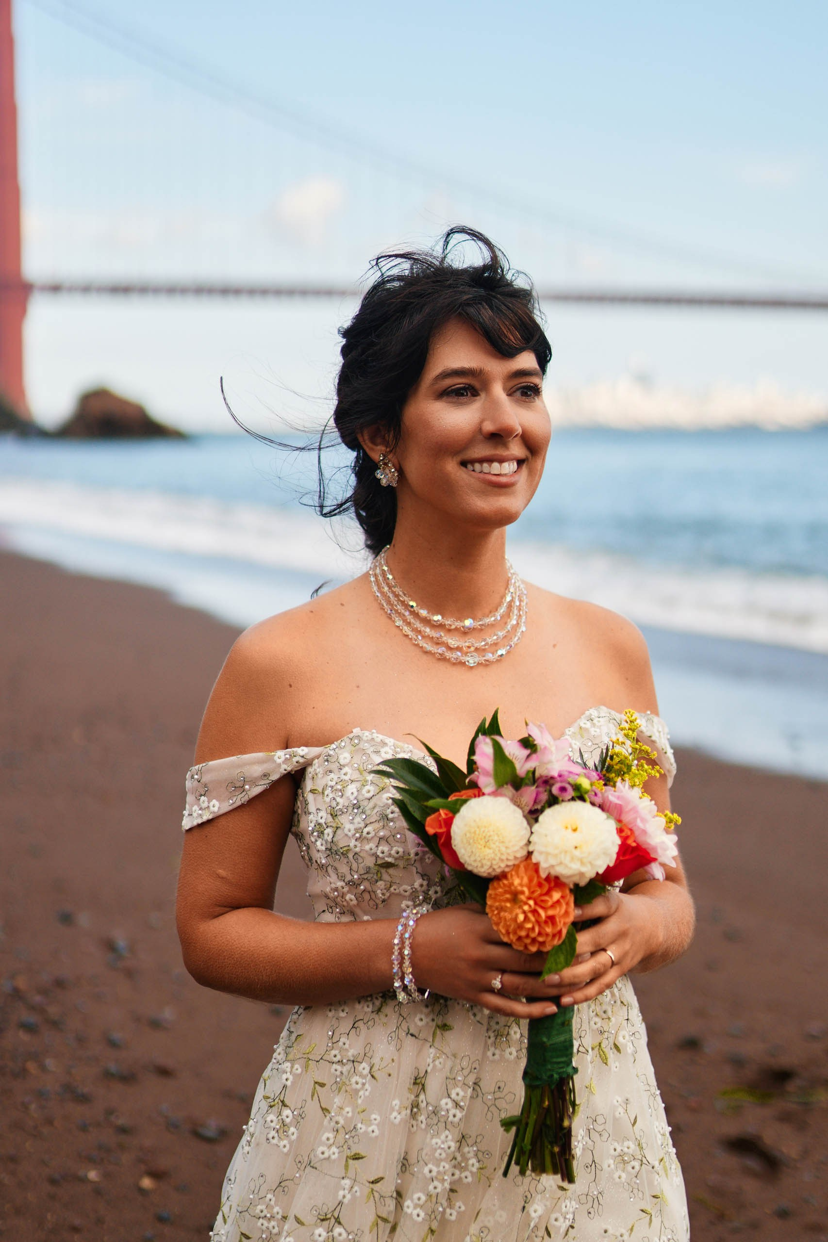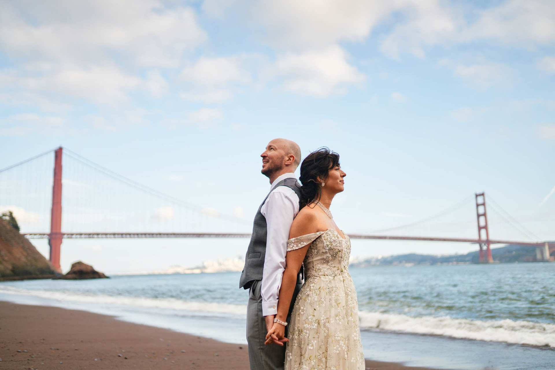 This intimate elopement at Kirby Cove, just below the Golden Gate Bridge, is a perfect example of how small weddings can be powerful, emotional, and beautifully personal. The ceremony took place on the beach surrounded by soft coastal light, ocean breeze, and quiet views of San Francisco’s most iconic landmark.