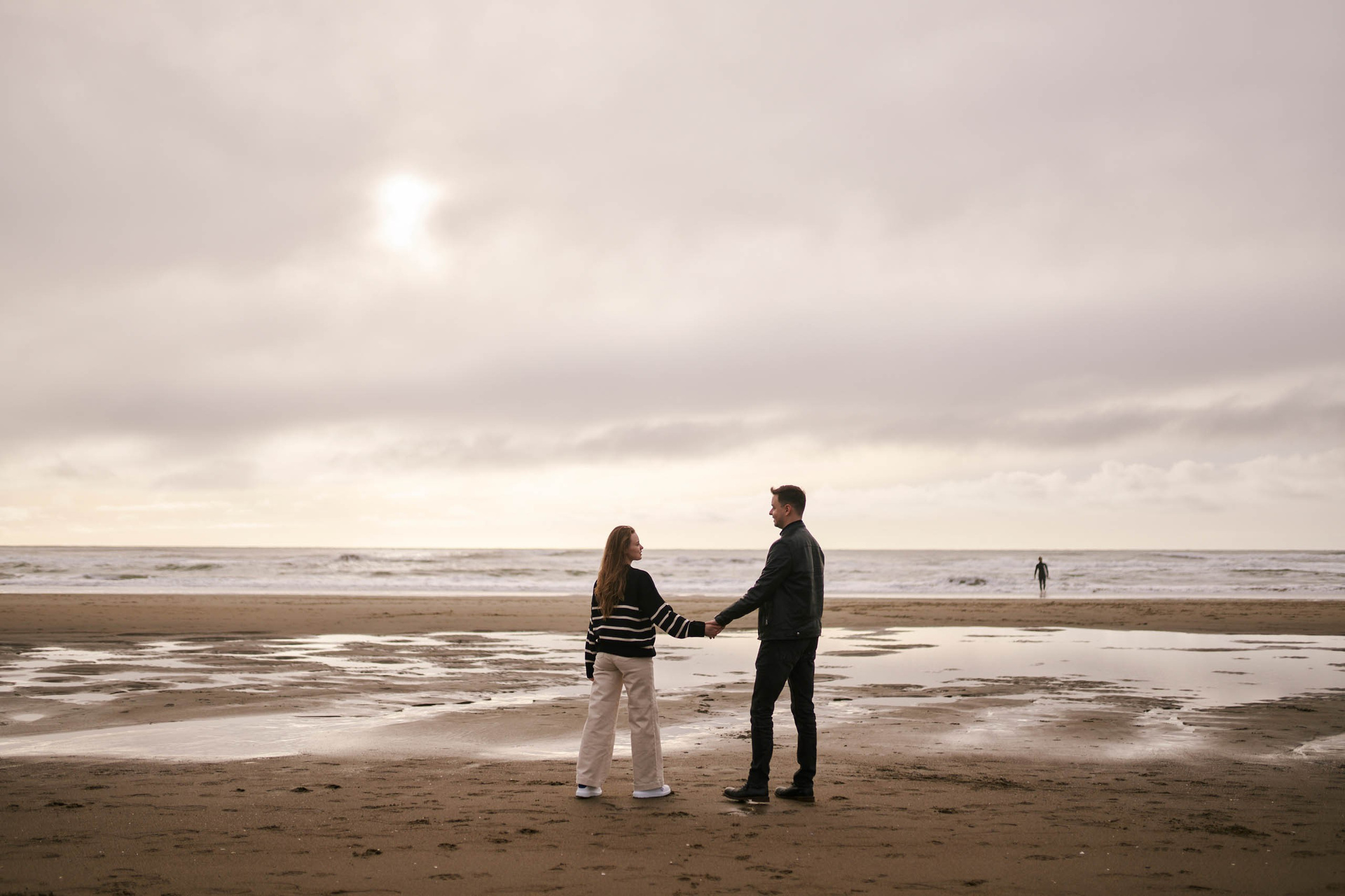 This session with N & L is a perfect example of how overcast weather, connection, and thoughtful creative direction come together to tell a beautiful love story at the edge of the Pacific Ocean.