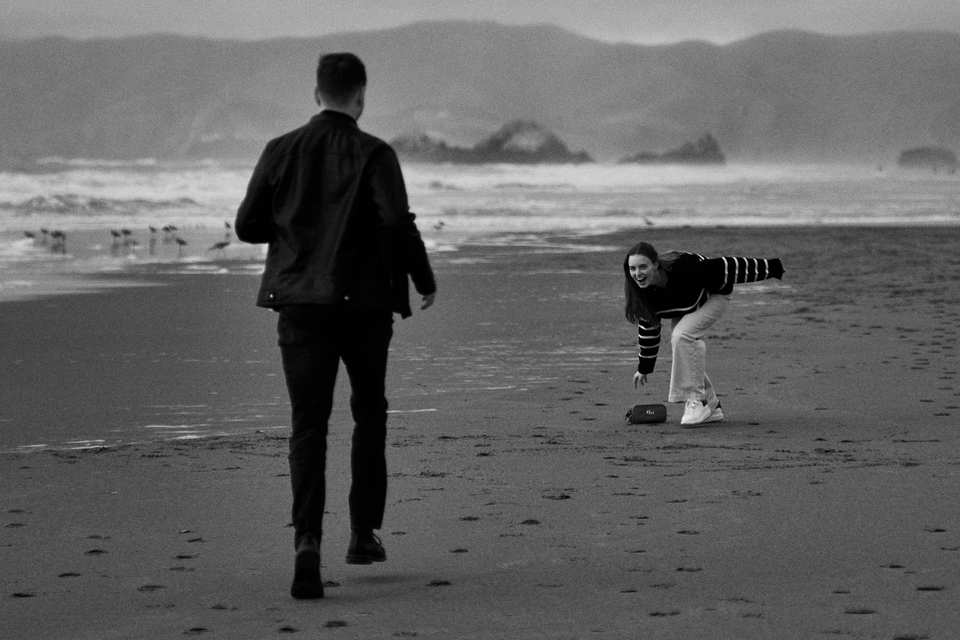 The Bay Area Life Agency created a documentary-style couple photoshoot for N & L at Ocean Beach in San Francisco, proving that cloudy weather can be just as romantic and cinematic as a sunset. Soft, diffused light, rolling fog, and muted tones turned the coastline into a natural studio, making every moment look timeless and intimate.